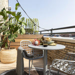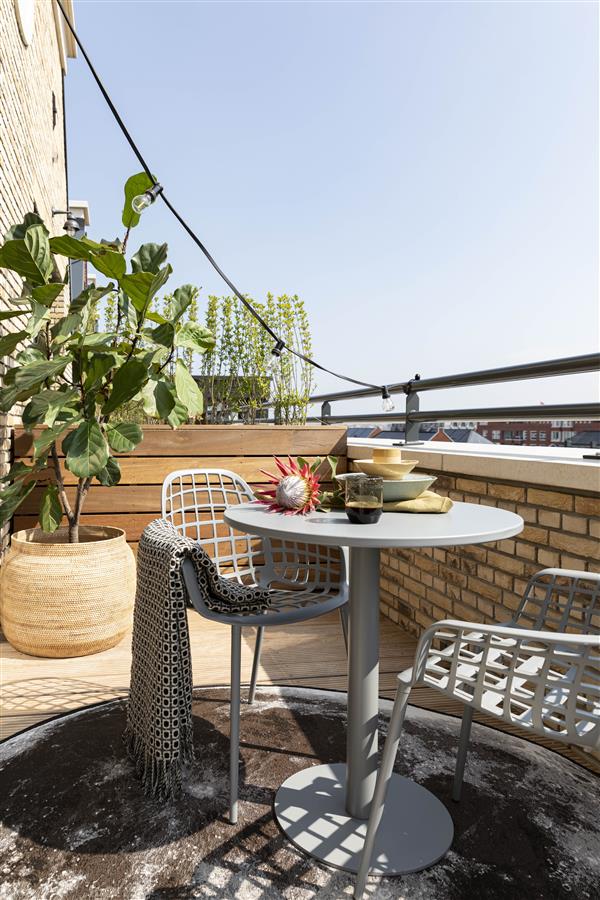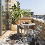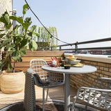 Eenvoud is key! Het is ondermeer te vinden in passende kleuren. Kijk bijvoorbeeld eens hoe onze Metsu bistro tuintafel kleur-cordineert met onze Albert Kuip tuinstoelen. Het is een makkelijke manier om de look compleet te maken. Maar ook met andere stoelen tovert deze metalen bistrotafel zelfs de kleinste buitenruimtes om tot volwaardige eet- of drinkgelegenheden!