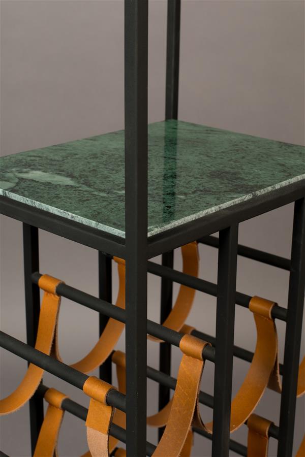 Bij een cosy night in of etentje met vrienden, mag een lekker drankje natuurlijk niet ontbreken. En of je nu een echte wijnkenner bent of niet, een collectie mooie flessen vult de ruimte direct met een gezellige sfeer. Met de Dutchbone Mil in huis wordt iedere borrel gegarandeerd een succes. Al is het maar door de prachtige look van deze unieke kast. Het metalen frame is gevuld met twee marmeren planken in een smaragdgroene kleur. Perfect om je mooiste wijn- of whiskyglazen op tentoon te stellen. In de leren hengels onderin hang je daarnaast je mooiste flessen op, zodat je deze altijd binnen handbereik hebt.