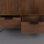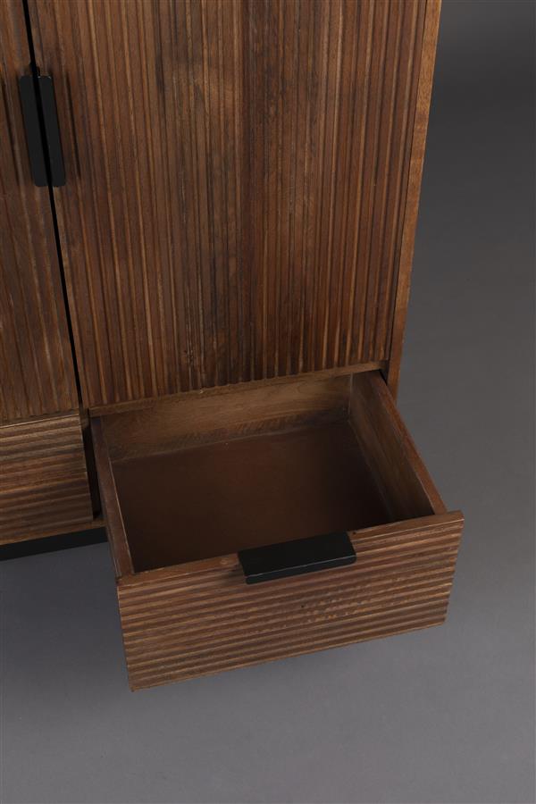 Retro meets modern met de Dutchbone Saroo serie. Deze meubels zijn gemaakt van massief mangohout, dat gefreesd is in een herkenbaar grafisch patroon. Dit zorgt voor een subtiele, vintage uitstraling. Toch passen de meubels ook perfect tussen de woontrends van nu, dankzij de moderne, matzwarte details. Kasten van pure kwaliteit dus, die de ruimte voorzien van een warme ambiance en waarin je je direct thuis voelt!