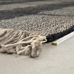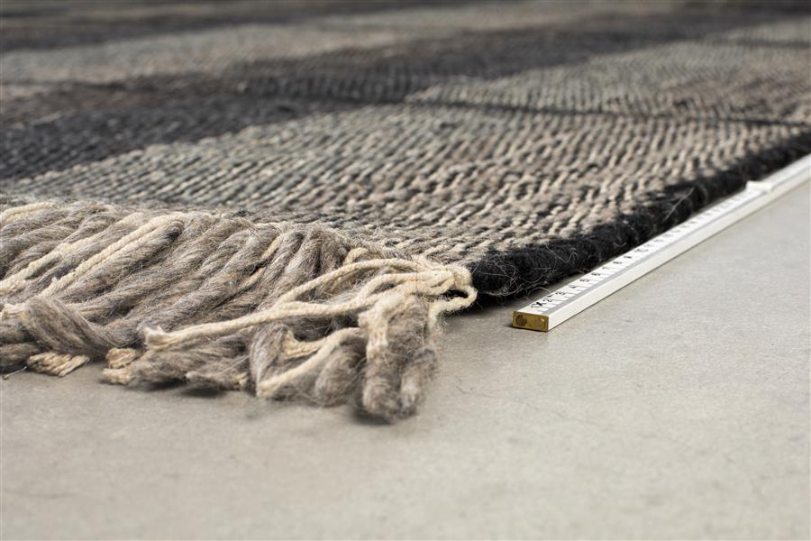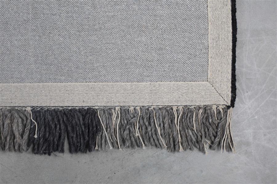 - Dit hoogwaardige wollen tapijt is handgemaakt en heeft een katoenen achterkant. De franje randen geven een speelse look.