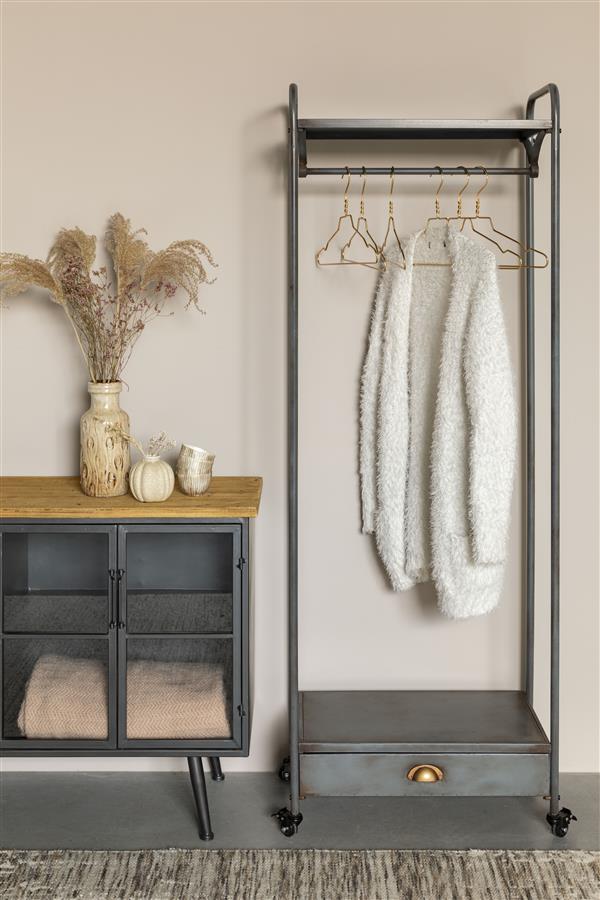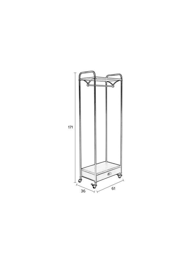 Kapstok Bravo is een vrijstaand kledingrek die ook perfect als vrijstaande kapstok gebruikt kan worden. Of je hem nu in je slaapkamer gebruikt voor je mooiste kleding of in de hal als garderobe. Het kan allemaal met deze verrijdbare kapstok. Door zijn wieltjes is dit kledingrek gemakkelijk te verplaatsen. Handig! In de lade kun je wat kleine accessoires kwijt.