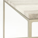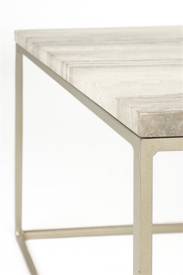 De Stay tafels zijn rechthoekige tafels die een elegant massief marmeren blad combineren met een robuust grijs ijzeren onderstel. Het tafelblad van marmer, zorgt ervoor dat elk tafeltje uniek is door zijn eigen unieke aderen en kleurschakeringen.