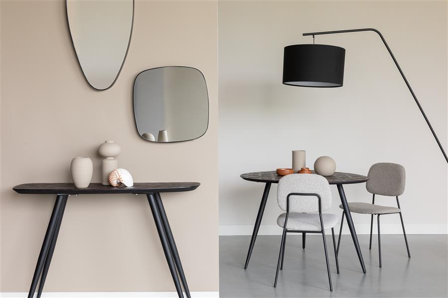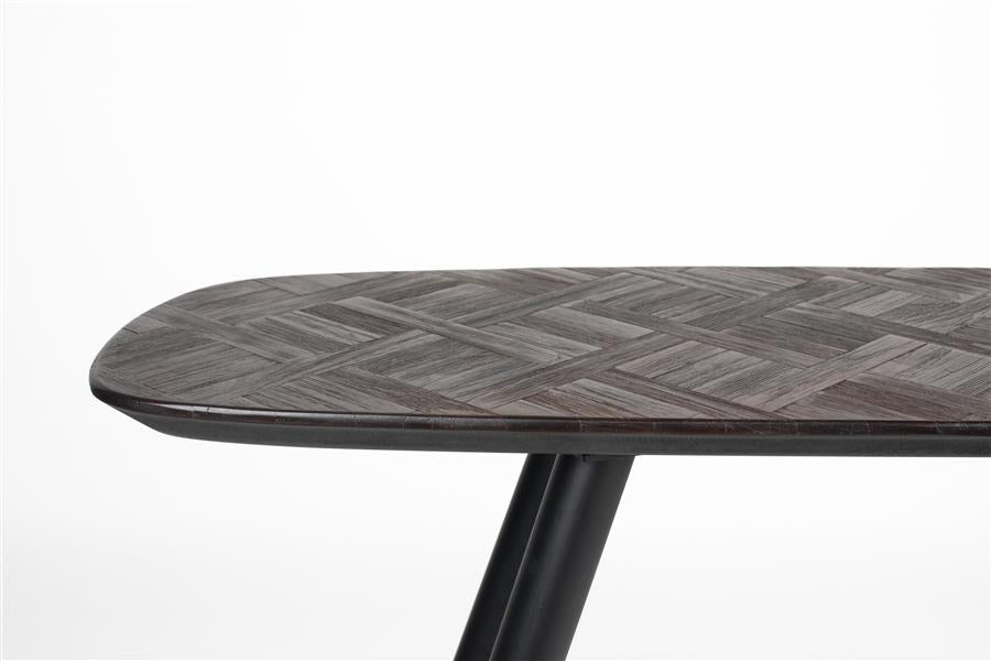 Webster is een perfecte combinatie van duurzaamheid en verfijning. Gemaakt van een tafelblad van gerecycled teakhout en stevige ijzeren poten, straalt deze collectie tijdloze charme uit in een rijke, donkere chocoladetint. Wat Webster echt onderscheidt is het unieke teakpatroon, dat een vleugje originaliteit toevoegt aan je ruimte.