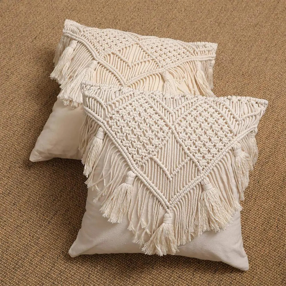 Cotton Linen Macrame Hand-woven Pillow Covers - Bohemian Style Home Decor 45x45cm