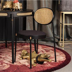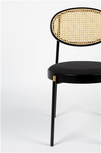 Neutrale beige tinten met zwartgelakt beukenhout is de perfecte combi voor liefhebbers van minimalistisch ontwerp. Terwijl de combinatie van het retro rotan met de gladde ronde randen van de stoel de mid-century meubelliefhebbers zal aanspreken. Dankzij de strakke lijnen en de klassieke met goud afgewerkte details, is dit het soort eetstoel dat graag gezien wordt aan een eettafel.