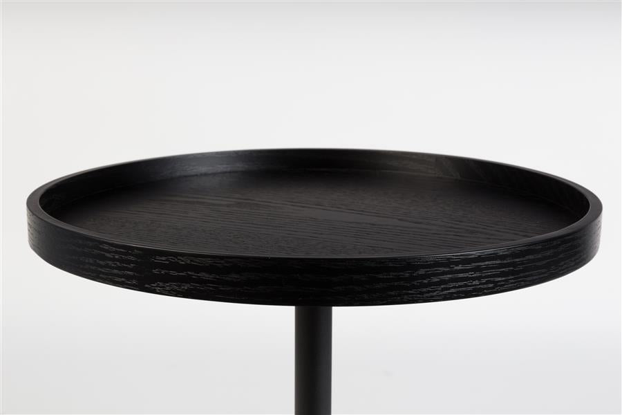 Maak ruimte voor bijzettafel Jason! Deze kleinere versie van onze populaire salontafel Jason is al even geweldig. Het is dezelfde geheime combinatie van zwart gepoedercoat staal en zwart eikenfineer die het m doet.