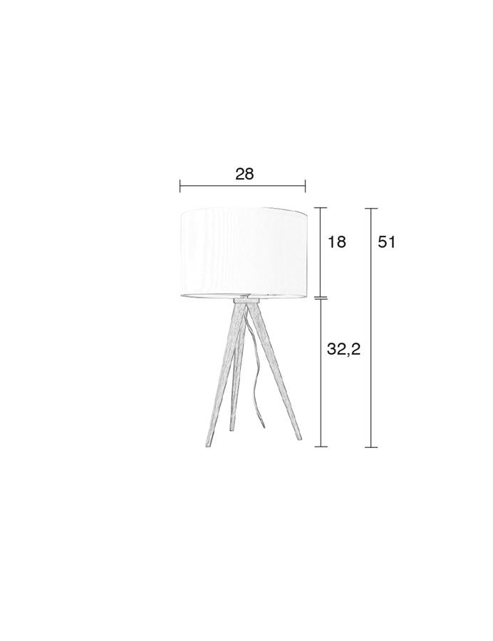 Elegante en lnge, slanke benen. Maar vergis je niet: onze Tripod tafellamp is verre van fragiel. Deze driepotige lamp is het moderne antwoord op die goeie, ouwe schemerlamp. Kies een kleur voor de lampenkap zet hem op dat houten frame en licht hem uit, die donkere hoek in je kamer. We kunnen geen genoeg krijgen van onze Tripod lampen. We hebben ze in veel variaties. Bekijk ze allemaal! Die poten zijn lang genoeg om je tafel van precies de juiste hoogte aan te lichten. Jep, dat hebben we onderzocht. Goed nieuws! Je kunt de look nu helemaal afmaken door deze tafellamp te combineren met zijn vloerlamp soortgenoot.