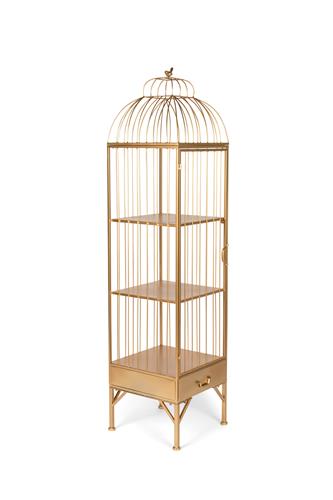 Deze Bold Monkey Unlock Me kastis een gouden genotdat er net zo goed uitziet als de snuisterijen die je er in wilt hebben. Drie planken en een onderste lade worden aangevuld met strakke lijnen en een gepoedercoate afwerking, maar het beste deel is de vogel zijn die niet binnen maar boven op de kooiachtige kast staat. Een symbool van plezier en vrijheid!
